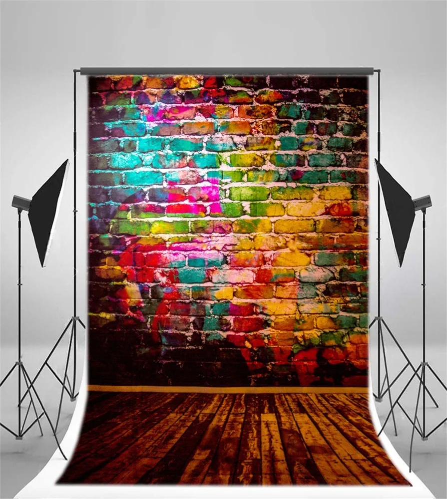 Laeacco Brick Wall Colorful Wooden Planks Board Baby Birthday Party Portrait Photo Background Photography Backdrops Photo Studio
