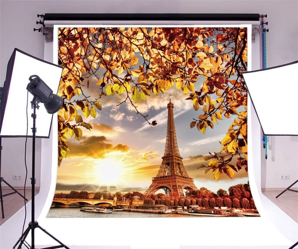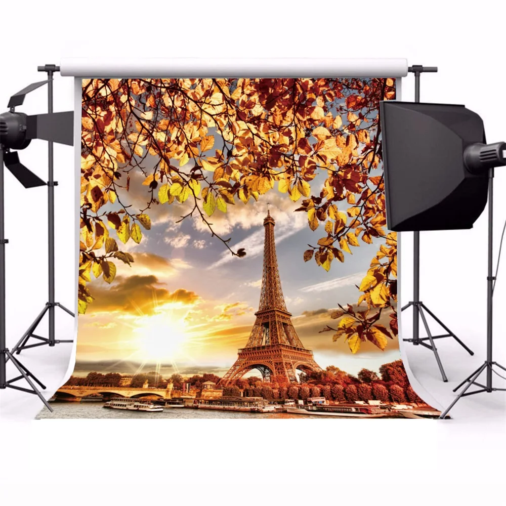 Laeacco Eiffel Tower Sunset Scenic Photography Backgrounds Digital Customized Photographic Backdrops For Photo Studio