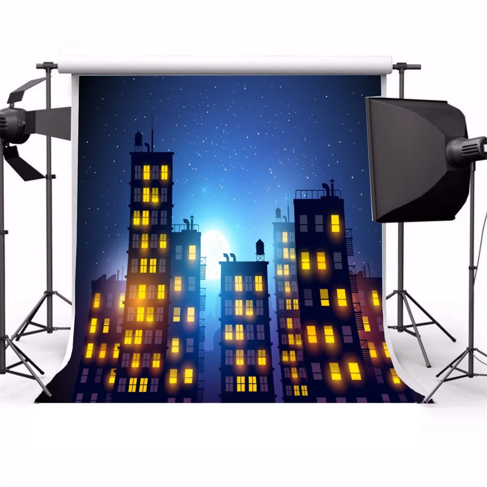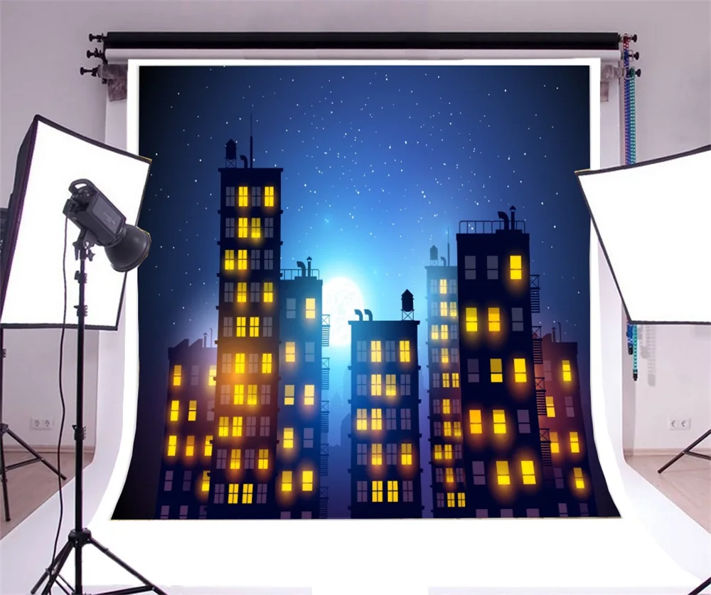 Laeacco Baby Comics Superhero Party City Buildings Birthday Poster Photography Backdrops Photographic Backdrops For Photo Studio