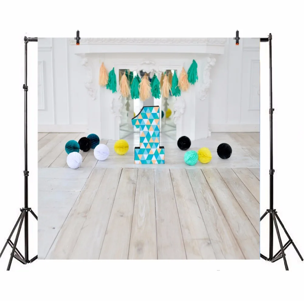 Laeacco Kids 1 Birthday Fireplace Ball Wooden Board Party Interior Photo Backgrounds Photography Backdrops For Photo Studio