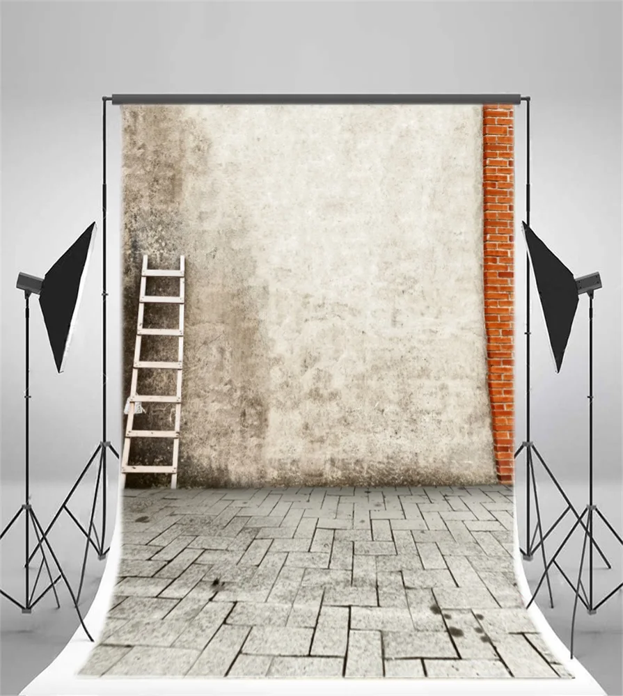 Laeacco Old Gray Brick Wall Floor Ladder Deserted House Interior Photographic Backgrounds Photography Backdrops For Photo Studio